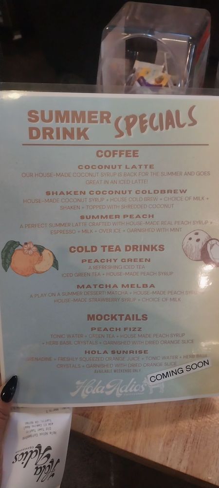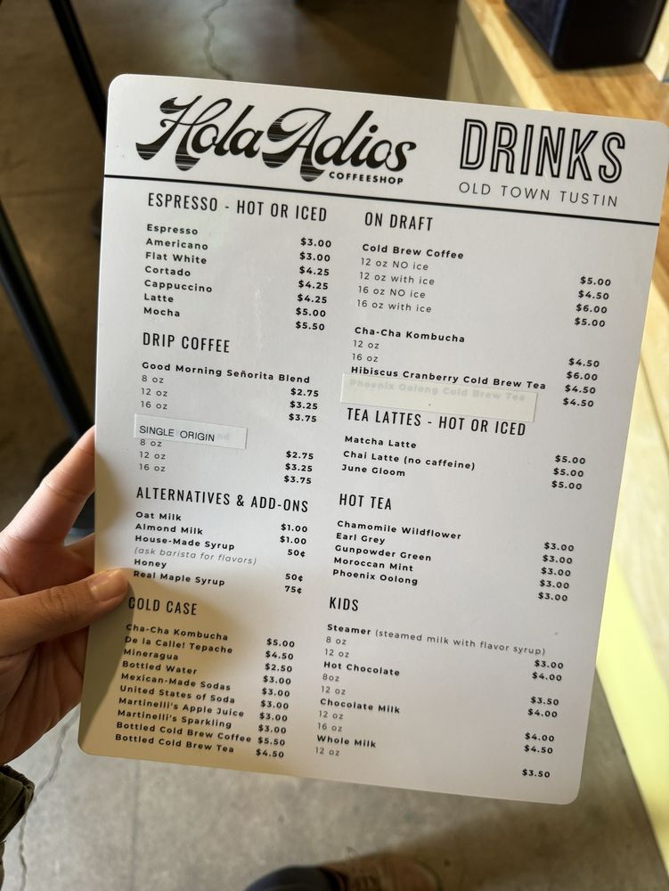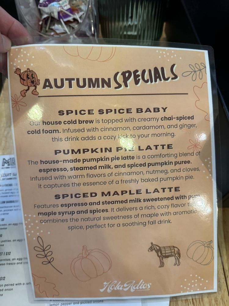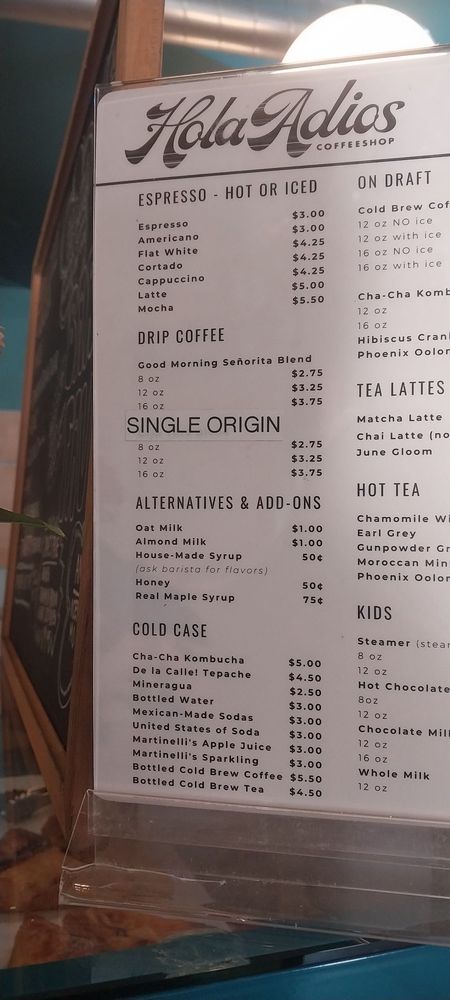Hola Adios Coffeeshop Menu