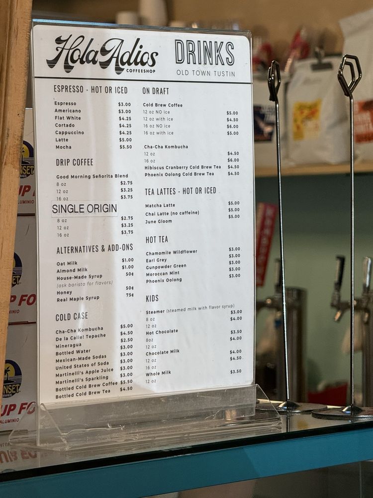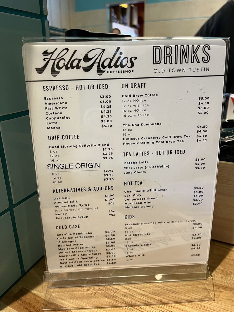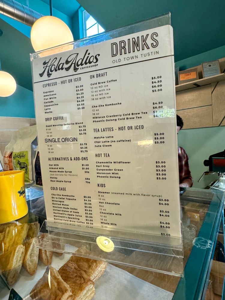 Hola Adios Coffeeshop, located in Tustin, CA, offers a delightful experience for coffee and tea lovers, sandwich enthusiasts, and those craving a hearty breakfast or brunch. With a diverse menu and a range of options, from crème brûlée lattes to chilaquiles and avocado biscuits, customers rave about the flavorful dishes and friendly service. The cozy yet stylish interior creates a welcoming atmosphere, perfect for enjoying a meal or catching up with friends. The brand also stands out for its commitment to sustainability, with compostable containers, plastic-free packaging, and reusable tableware options. Whether you're looking for a relaxing morning coffee or a satisfying meal, Hola Adios Coffeeshop has something for everyone, making it a must-visit spot in the area.